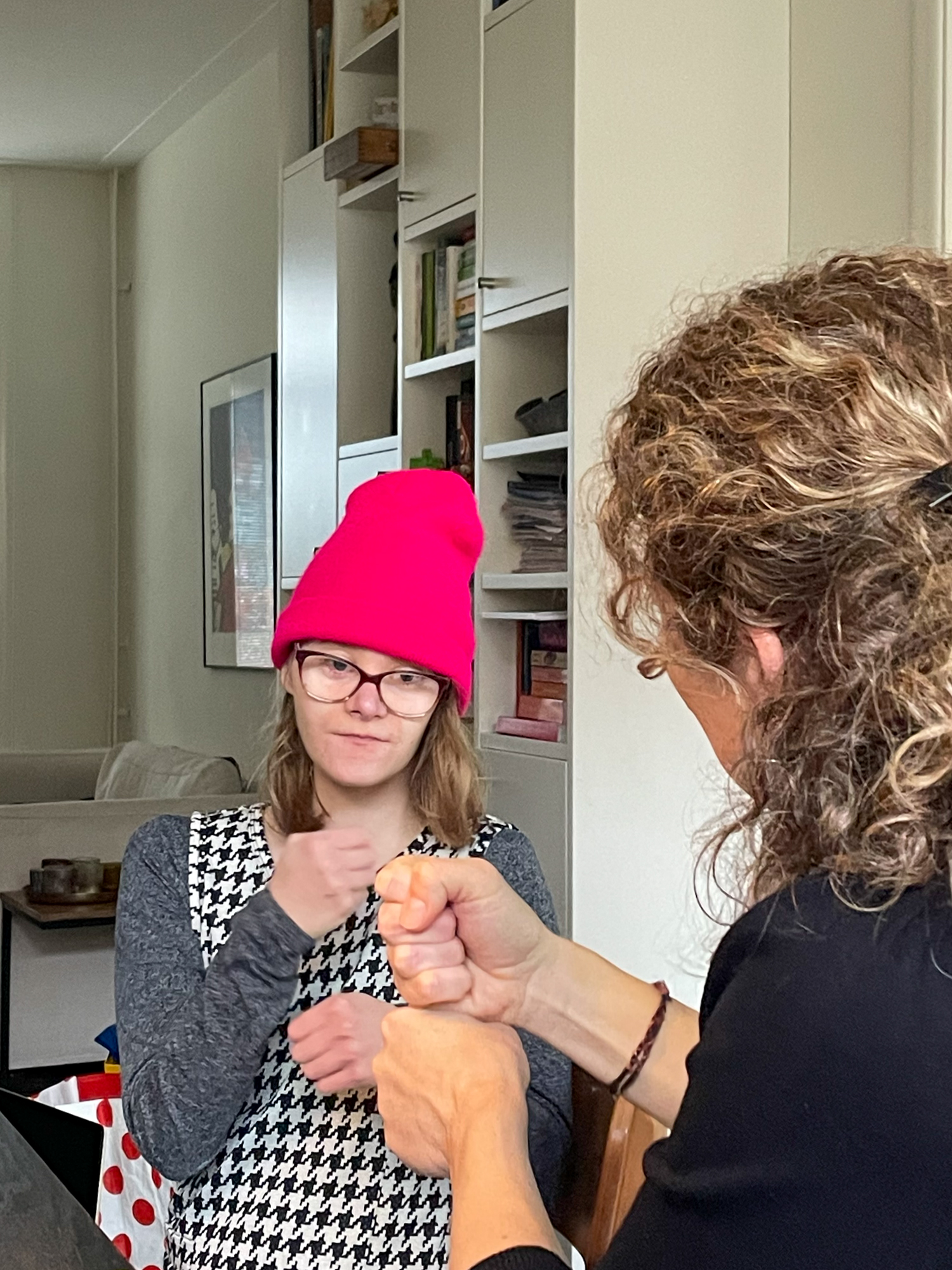 Deze fotoserie maakte ik van mijn lieve zus Eva. Zij is doof en meervoudig gehandicapt. Eva is 21 jaar en woont al vele jaren op een specialistische woongroep. In de weekenden halen we haar vaak op en blijft ze een paar dagen bij ons, bij mijn moeder of vader thuis.